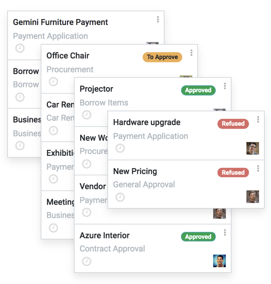 The management of your requests are made easy; travel, office supplies, payments, all request submissions can be created, validated, or declined in seconds from your approval dashboard.