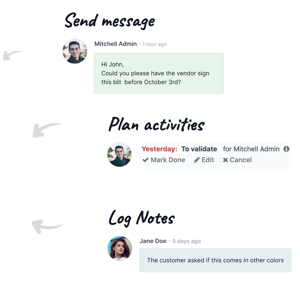 Assign documents or Odoo records such as invoices, tasks, etc. to users, customers, or vendors.