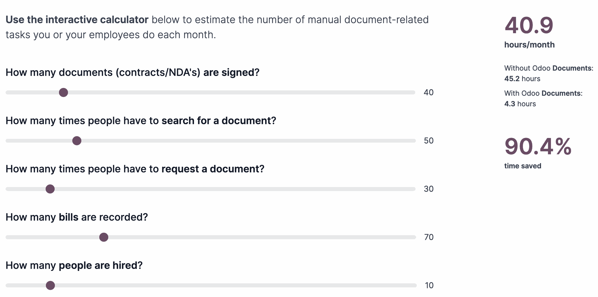 Use the interactive calculator below to estimate the number of manual document-related tasks you or your employees do each month.