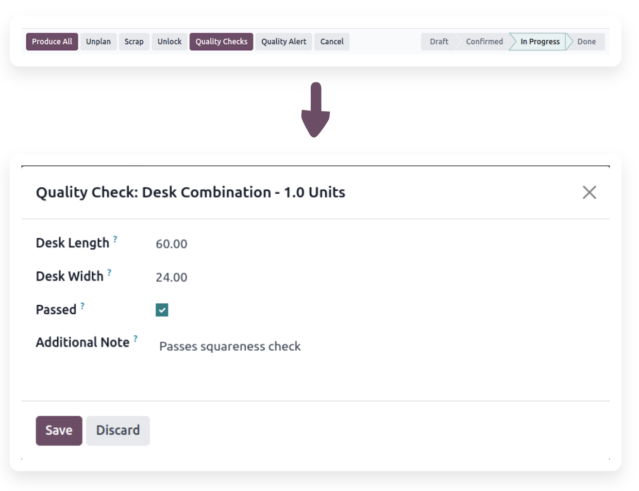 Maintain product consistency and quality by configuring recurring quality checks on manufacturing and inventory orders.