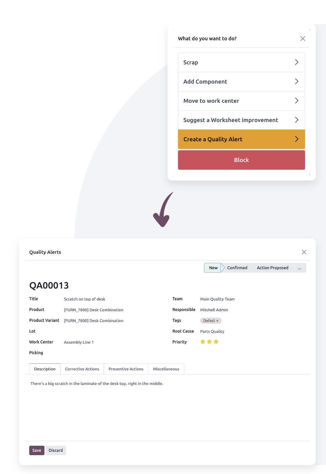 Odoo Quality is the best way to address the root causes of costly defects and ensure quality across the entire product life cycle.