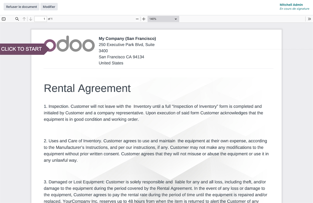 Odoo's Rental application is the simple way to oversee every step of the rental process. Manage products, schedule pickups, and sign documents all from one platform.